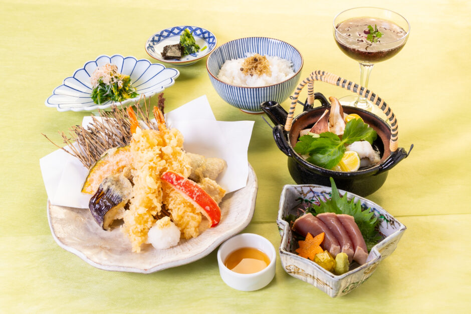 天婦羅 海老 鱧 薩摩芋 生麩 かぼちゃ 秋茄子 万願寺唐辛子