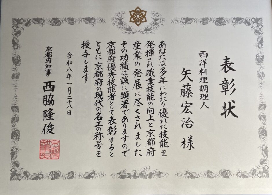 京都府優秀技能者【京の現代の名工】の称号を授与されました。